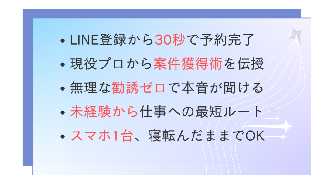- 受講生の成功事例や、具体的に得られる報酬イメージの共有