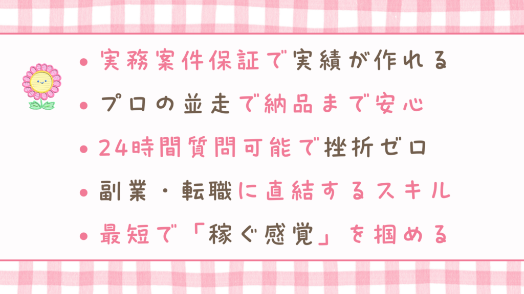 知識を実績に変えたい方にとって、実務案件保証はリスクを最小限にする最高の投資です。